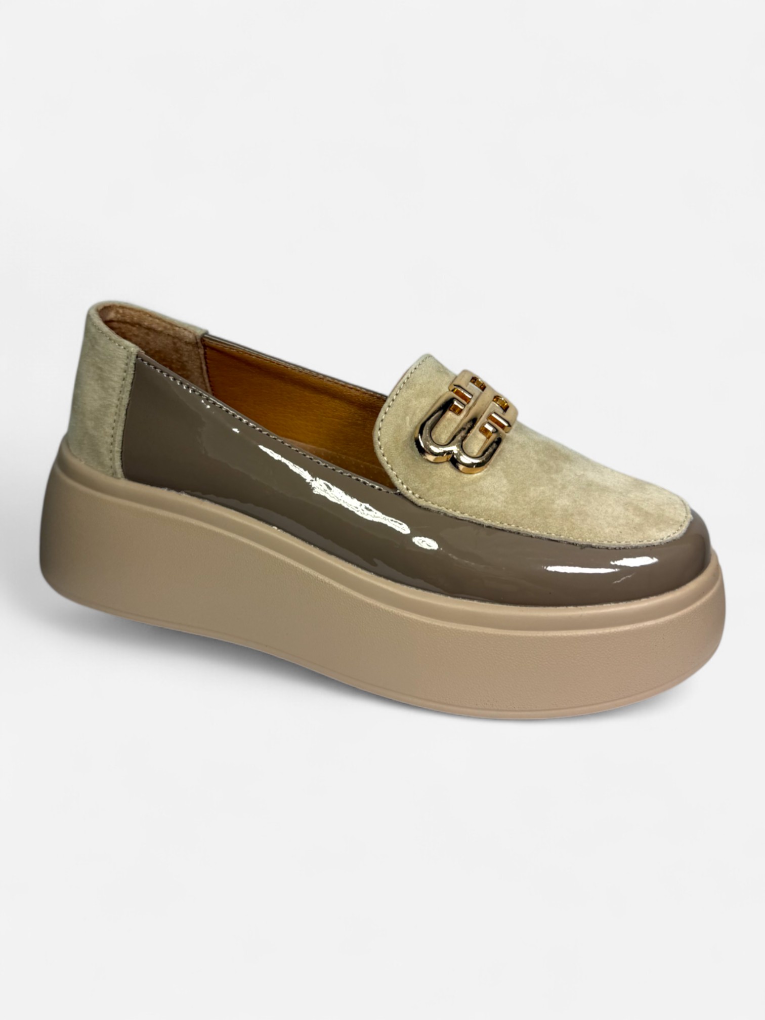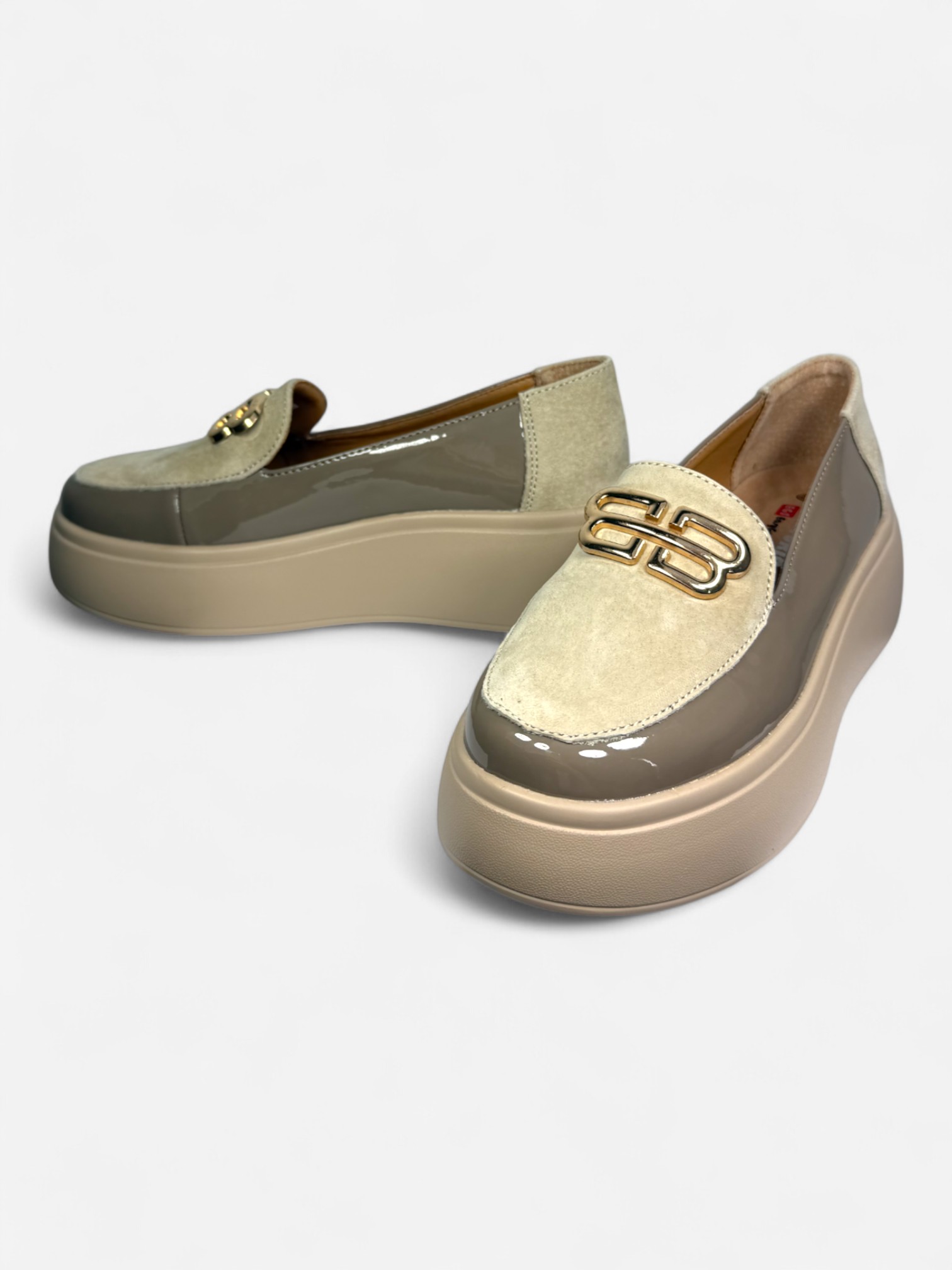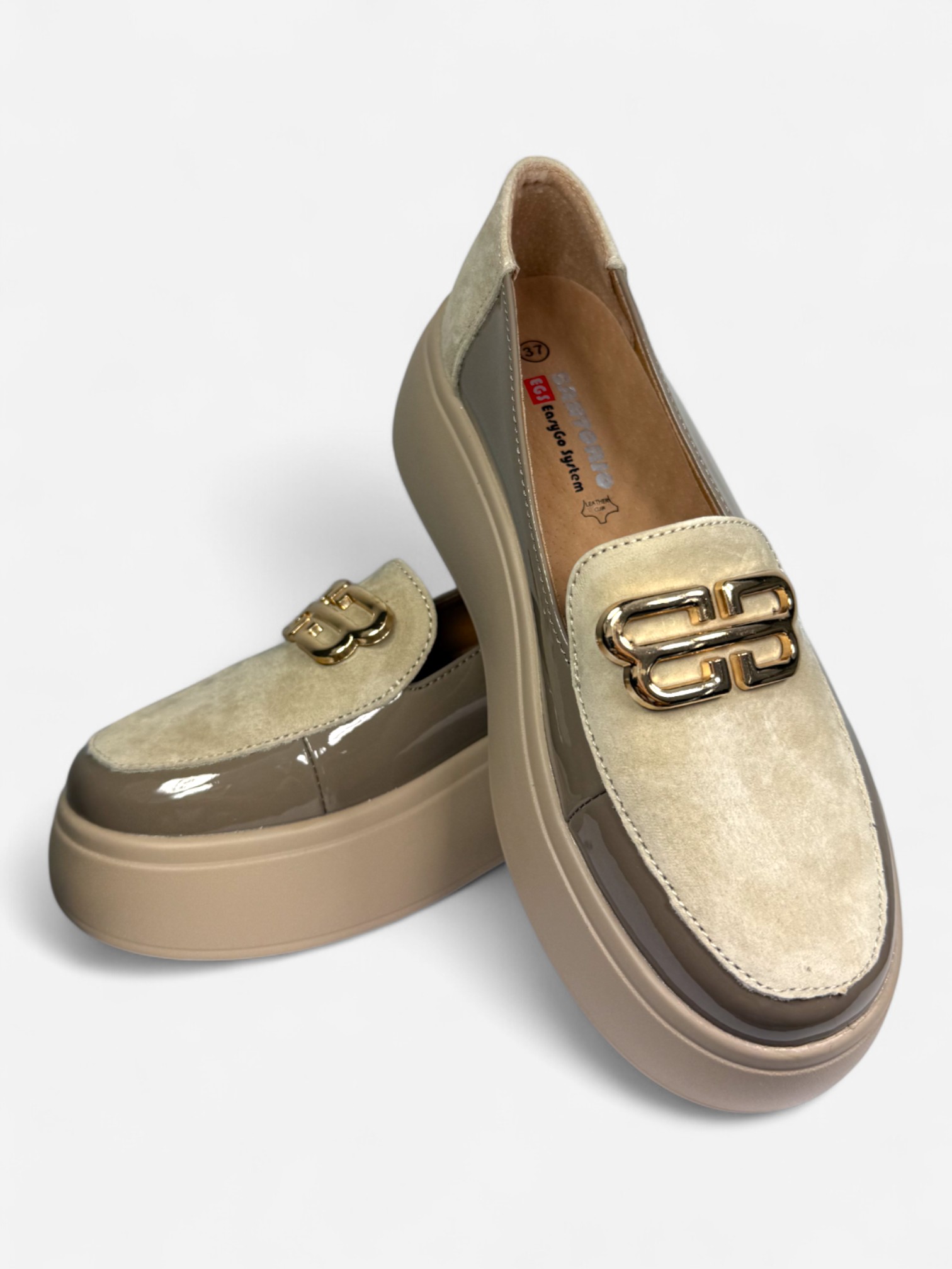 Stylowe mokasyny Santorio BB z naturalnej skóry, łączące zamsz i lakier w nowoczesnym zestawieniu kolorów. Komfort zapewnia zdrowotna wkładka na systemie EGS i lekka, podwyższona podeszwa.